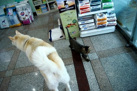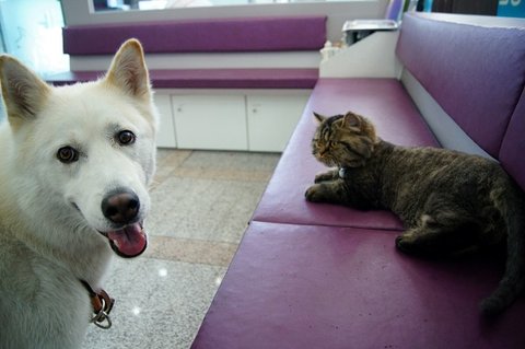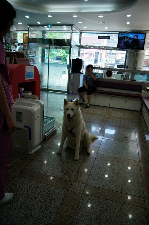 병원을 간식 먹고 사람 만나고 개 고양이 친구들 만나는 장소로 아는 심바.ㅋㅋ