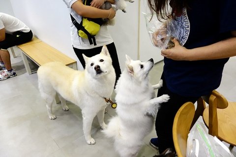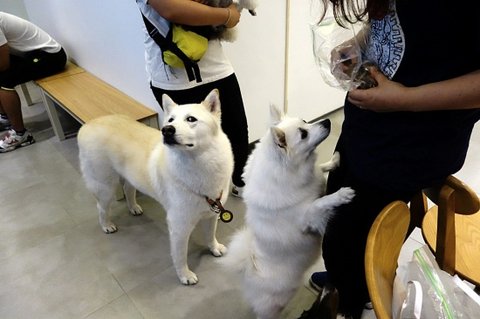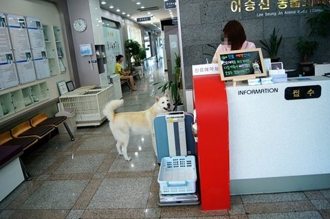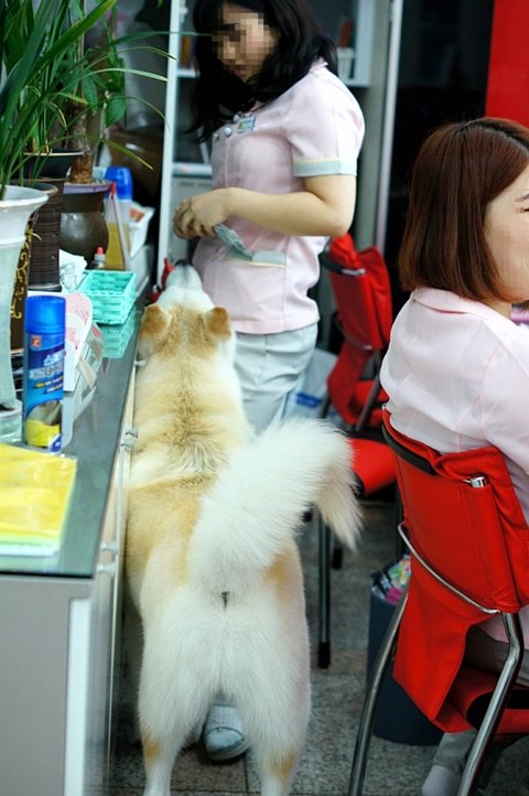 동물병원에 놀러왔어요..ㅋㅋㅋ 카운터에 들어가서 개껌 주세요 하고 있네요.ㅋㅋㅋ