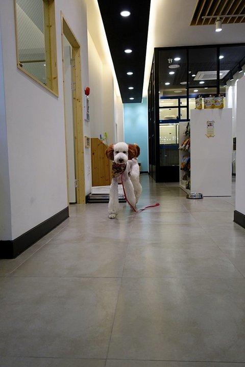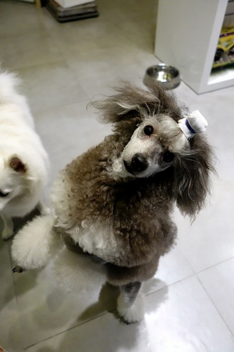 동물병원에서 나왔는데 갑자기 나타난 푸들 한마리.