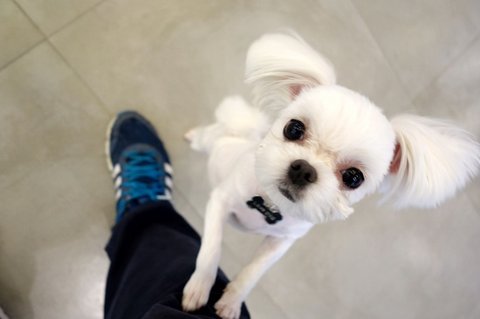 형아 저기 수제간식이 있어... 간식 냄새 킁킁 맡고 있어요.