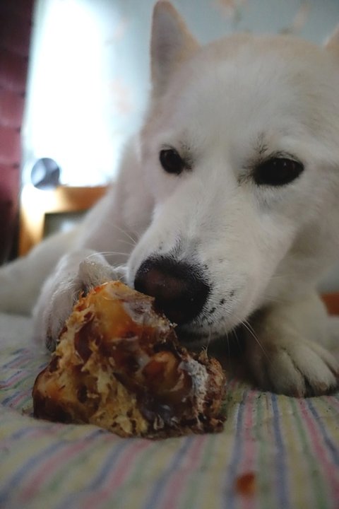 앙.. 이거 맛있구만.. 연골 부분이랑 살코기만 뜯어먹게 했어요. 뼈는 저도 좀 무서워서