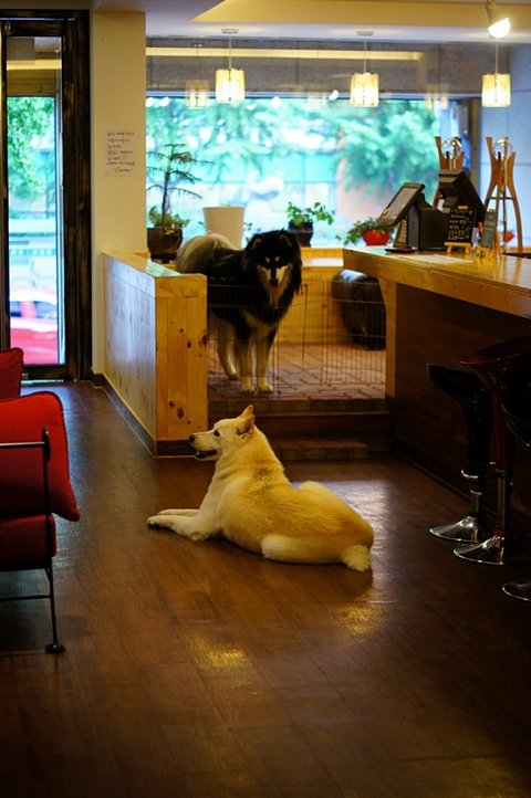 시원이 ㅋㅋ 저랑 심바를 알아보고 안에서 빤히 보고 있었어요.