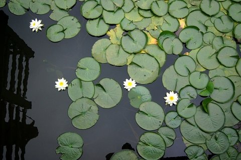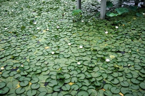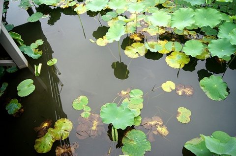 물속에 커다란 잉어들이 왔다 갔다 했어요.
