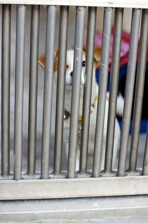 킁킁 소형견 친구와 울타리 너머로 인사하는 심바