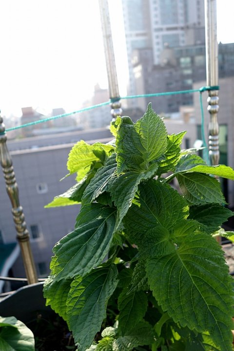 옥상에 심바 응아를 거름으로 먹고 자라는 깻잎이 많이 자랐네요.