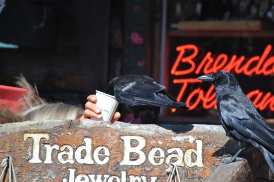 항구에 사는 까마귀 한쌍이 가게에 찾아왔습니다.