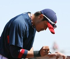 팬들에게 다가가 열심히 사인을 해주고 있는데