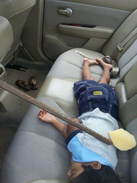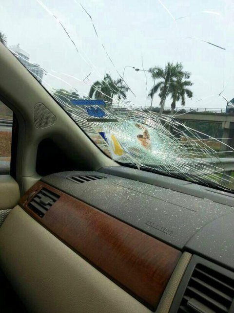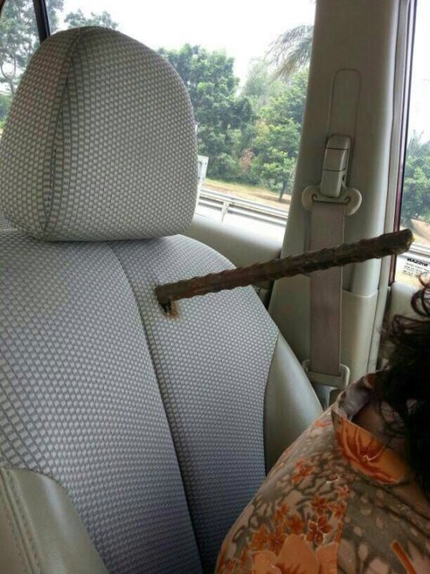 앞에서 가던 트럭의 철근이 관통했는데
