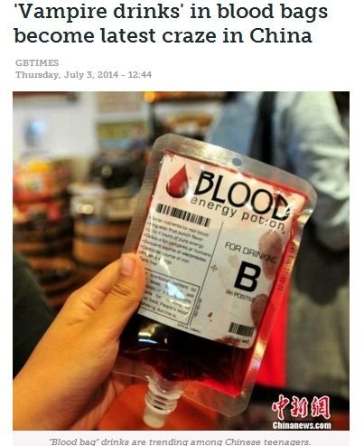 마치 수혈팩을 연상시키는 음료의 이름은