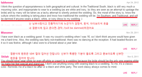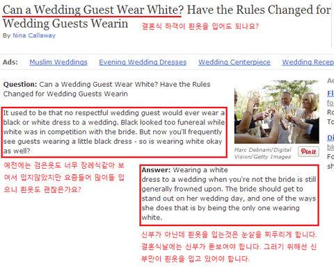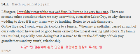 원래 서양 문화에서 흰옷을 입지 않는것이 에티켓이고 미국여자들이 찾아본 결과 더 유난스럽네요.