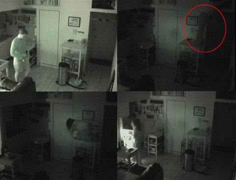 주방의 비좁은 공간에 몸을 숨기고 있던 정체 불명의 한 여성이