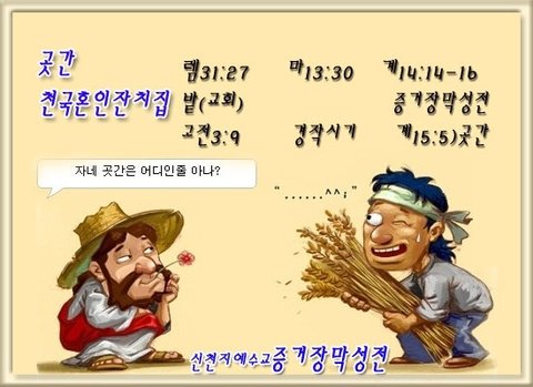 이 밭에 마귀도 가라지를 덧뿌림으로 한 밭에 두 가지 씨가 자라게 되어 재림 때 추수가 있게 됩니다.