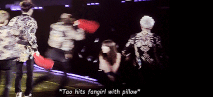 타오가 팬을 쿠션으로 살짝 때리자