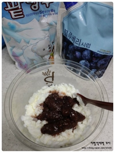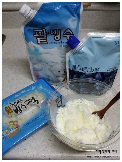 팥빙수팥, 블루베리시럽, 빙수떡