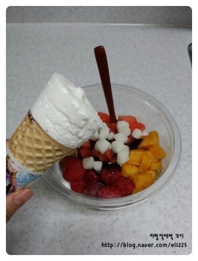 과일은 잘 빙수에 잘 섞이도록