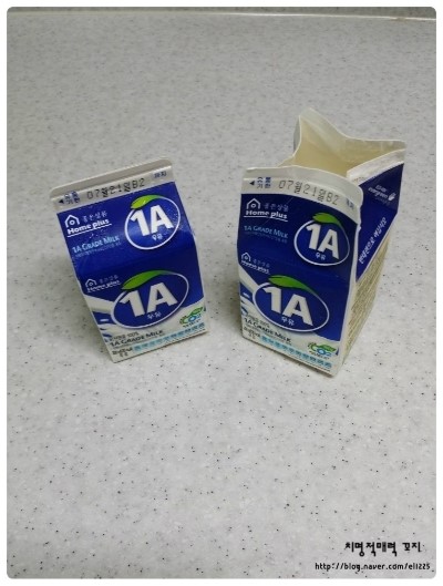 200ml 흰우유 두팩을 냉동실에 얼려두었어요