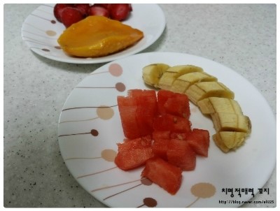 바나나와 수박도 조금씩 썰어서 넣어줄꺼에요