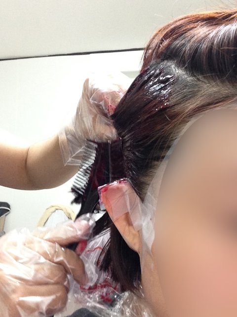 저도 셀프 염색으로 레드 계열인 와인컬러에 도전해 보았습니다 ㅋㅋ
