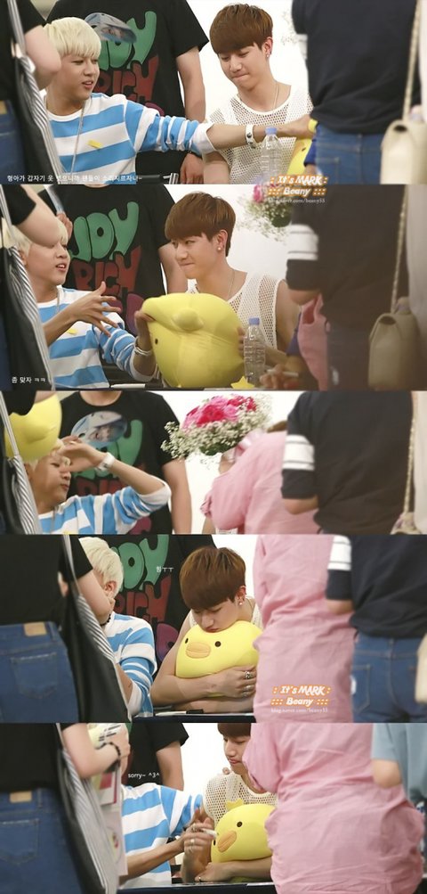 싸인할때도 인형 절대 놓아주지않는 마크ㅋㅋㅋㅋㅋㅋㅋㅋ