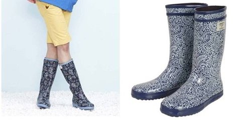 여자 : 좀 화려한 스타일로 패턴 레인부츠 / 남자 : 비올때 신는 부츠