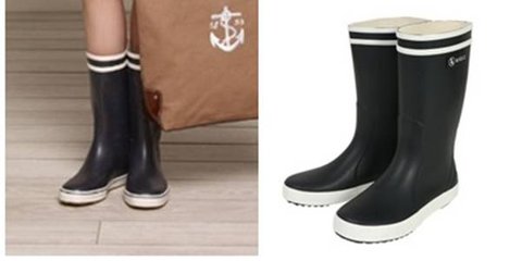 여자 : 파스톤 칼라 레인부츠 / 남자 : 비올때 신는 부츠