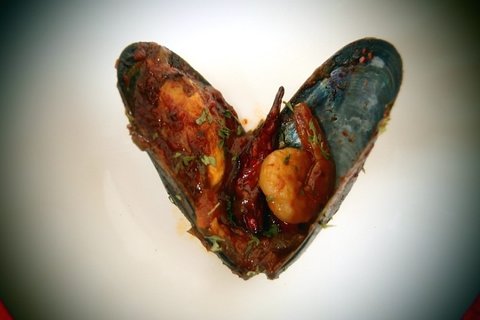 안그래도 서글프게 혼자먹고 있는데 하트표 홍합이라니...