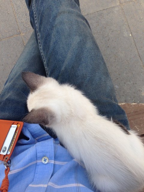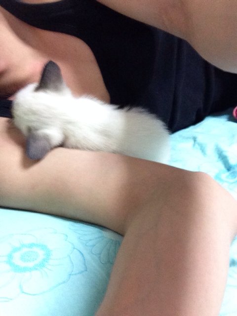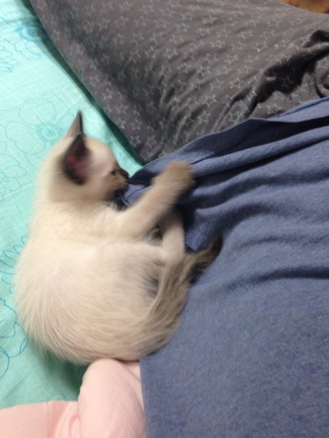 자세가 불편한지 점점 위로 올라오다가 어깨까지 올라왔네요