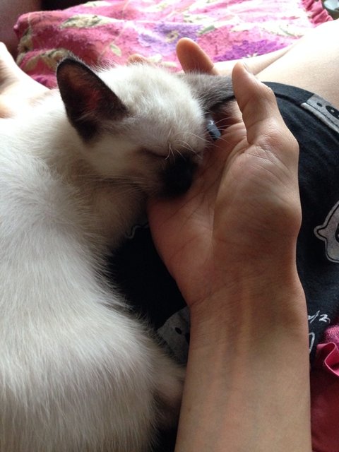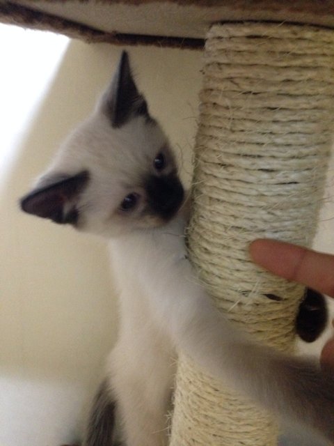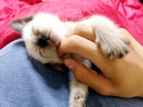발톱을 세운 쿤이에게 손가락을 쓱쓱(어릴때 손가락으로 놀아주면 장난감으로 착각할수 있어요)