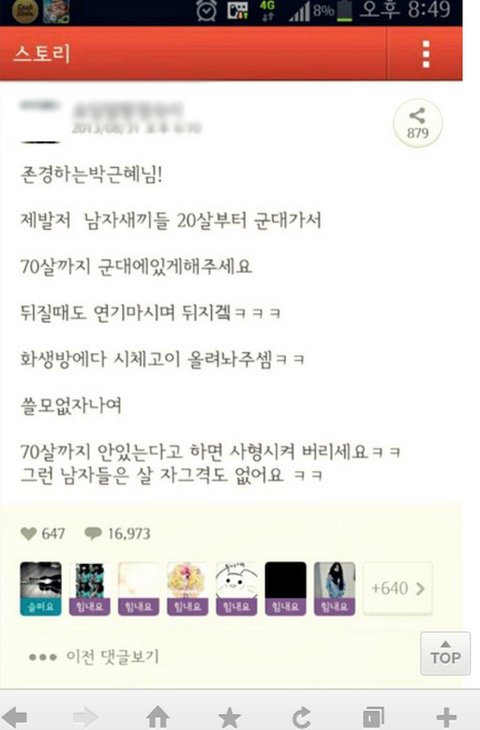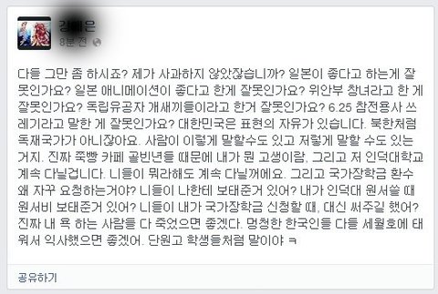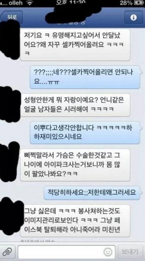 sns는 인생의 낭비다. ^^ 한국 인터넷 발달한 거 좋은 거 없다. 자살율이 왜 높나. 맨날 남의 시선 의식하니깐 그렇지. 페북이나 트위터나 카스나 이런 걸 보면 남의 사생활이 드러나게 됨. 옛날에는 부자들의 생활을 알 방법이 없었지만 지금은 누구나 쉽게 자신보다 잘 사는 사람들의 생활을 알 수 있게 되고 곧 자신의 삶과 비교하게 됨. 그러면서 상대적 박탈감이 늘게 되고, 그 결과가 인터넷 속도 세계 1등 그리고 자살율 1등이다. 결국 남하고 비교하지 말고 절대적 행복을 추구해야함.