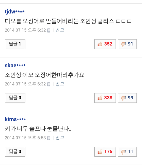 경수한테 오징어라할 얼굴도안될꺼면서