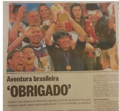 아르헨티나 우승을 막아준 독일에 감사를 표하는 브라질 언론....