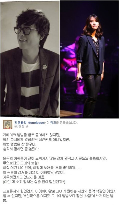 아이돌 중에 음반 칭찬을 받은건 아이유가 처음