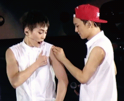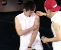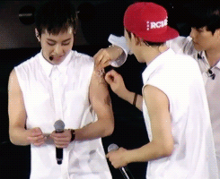 민석이 팔에 붙은 헤나 떼주는 백현이랑 종대 ^^
