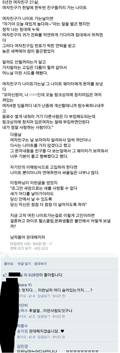 근데 저 남자가 웨이터 번호를 알고 있었다는게...음... 여친 부킹하는거 막겠다고 그 웨이터 번호 따고 꼬마신랑아라고 자연스럽게 문자 보내지는 않았을텐데..음... 관대하긴 한게 뭔가 찜찜하다