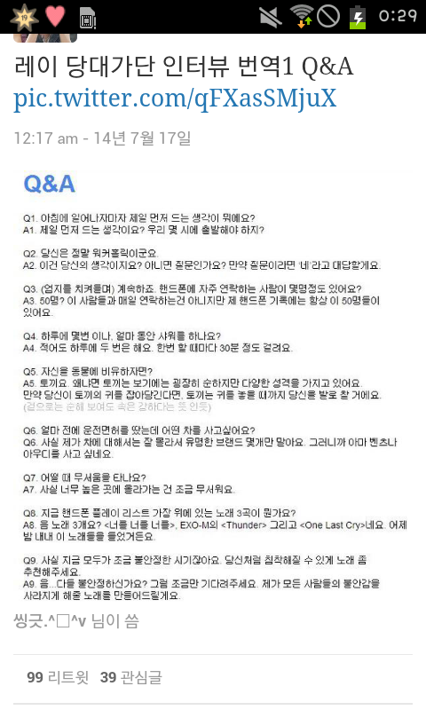 야 미친 레이 인터뷰....ㅠㅠㅠ