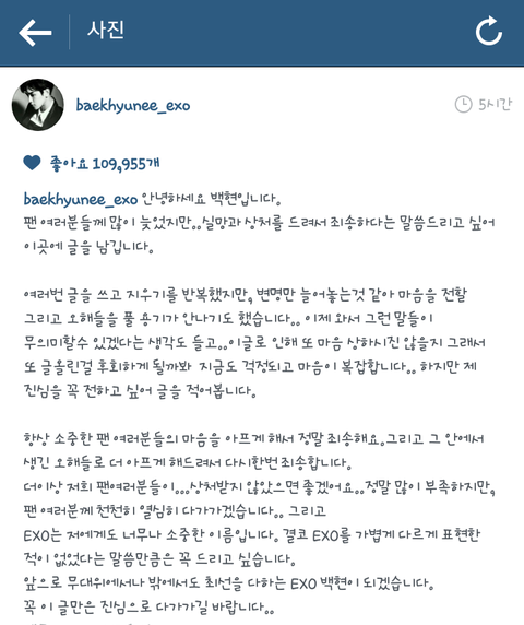 앞으로 절대 실망하게 하는 일 없도록 하는 여러분의 엑소 백현이 되겠습니다.. 다시 한번 정말 죄송합니다...