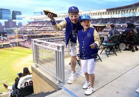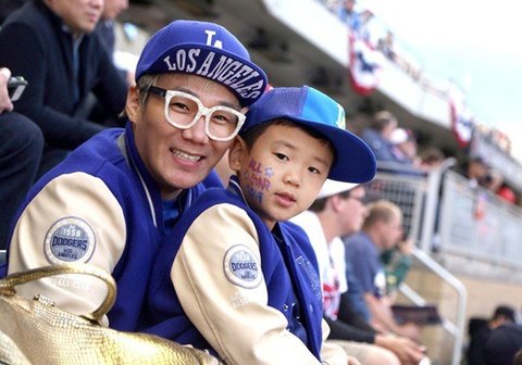 아빠와 커플룩 맞춰입고 야구 즐기는 붕어빵부자ㅋㅋㅋㅋㅋㅋㅋㅋㅋ