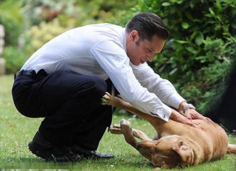 톰하디 여유롭게 개를 다루는 솜씨가