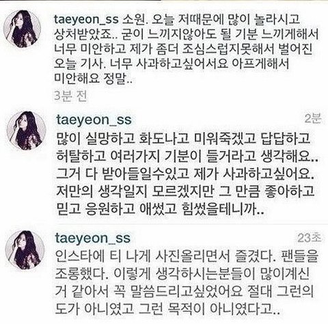 태연누나가 인스타에 심경고백햇다가 글삭한거 따라하려고