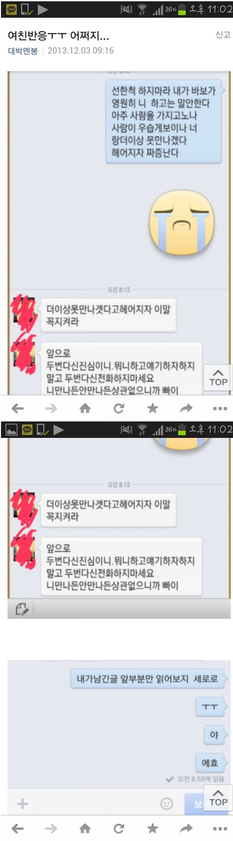 여자친구도 헤어질마음 평소에 약간 있었던거같음..보통사람이라면 헤어지더라도 이유는 묻고 대답은 들을텐데..ㄷㄷ