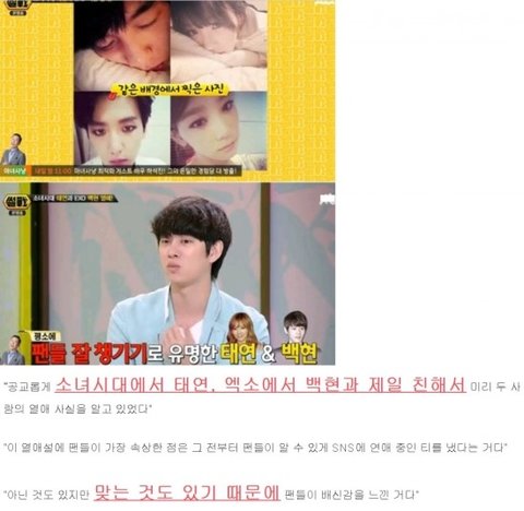 태연 백현이 결국 이 방송으로 인해 사귀는 게 실제로 맞는 걸 부정하는 팬들은 사라지겠군