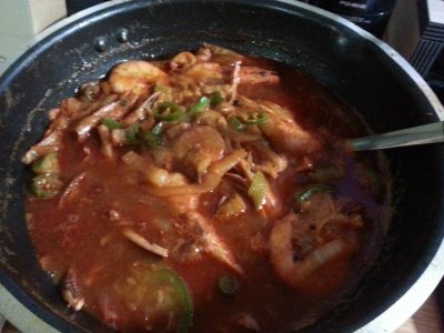쭈꾸미삼겹야채볶음.. 하아 장황하지만 물바다....... 졸이다 찍어서 그래여...