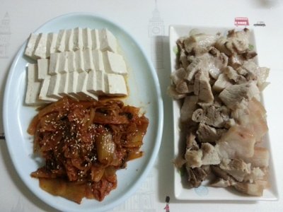 살결반대로 짤라서 김치볶음과 두부 살짝 데쳐서 같이 먹었더니