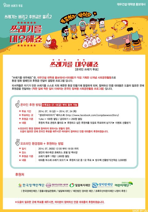 저희 대우건설대학생 홍보대사11기 팀원들이 이번에 저희들의 힘으로 유기견 및 동물들을 후원할수 있는 작지만 큰 행사를 하려고 합니다.
