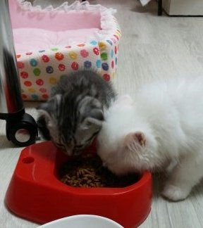 (아, 물그릇에 사연이 있어요... 저 밥그릇과 세트로 들어있는 물그릇 아시죠?? 그 물통에 물을 담았더니 물이 자꾸 새길래 빼 놓고 그릇에 담아 몇 일 주었더니 새걸로 사와서 다시 물을 담아 주었는데 못 먹어요ㅠㅠ 지금은 무용지물로 한 곳에 쳐박혀 있답니다ㅠㅠ 방법이 없을까요???)