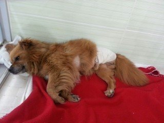 주인을 찾을 수 없었고 뒷다리를 쓰지 못하여 너무 괴로워했습니다.