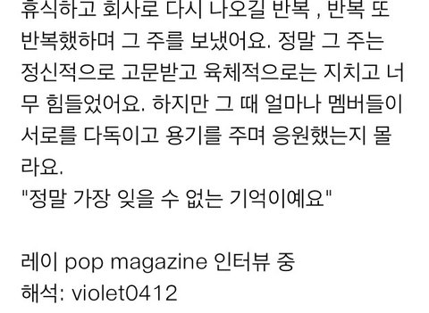 pop magazine 인터뷰에서 레이가 한 말해석본