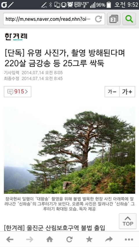 220살먹은 금강송이면 그루당 몇천만원 줘도 못사. 그런 나무 25그루를 베었으면 최소한 10억이상은 벌금먹이고 벌금과는 별도로 형사고발도 해야하는것 아니냐? 금강송 가구재로만 팔았어도 5백이상은 되겠구만
