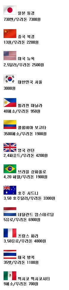 세계 각 도시들의 택시비.jpg