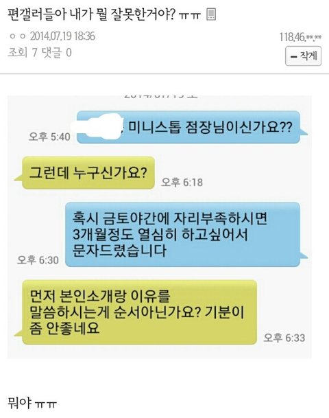 글쓴이 잘못이다vs사장이 이상하다 논란되는 문자